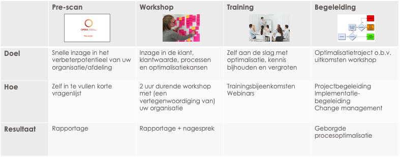 De producten en diensten die we bij Opera hebben ontwikkeld op het gebied van procesoptimalisatie zijn gebaseerd op wetenschappelijk inzicht en hebben in de praktijk keer op keer hun waarde bewezen.